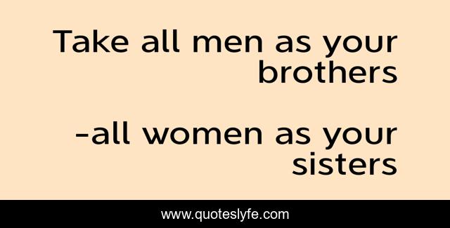 "all women as your sisters Quotes." Quoteslyfe.com, 2025. Mon. 08 Dec. 2025. <https://www.quoteslyfe.com/quote/Take-all-men-as-your-brothers-49780>.