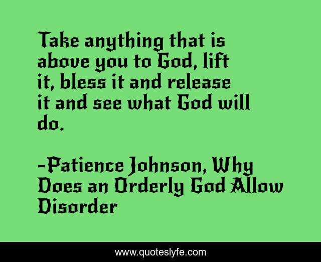 "Patience Johnson, Why Does an Orderly God Allow Disorder Quotes." Quoteslyfe.com, 2025. Fri. 05 Dec. 2025. <https://www.quoteslyfe.com/quote/Take-anything-that-is-above-you-to-45918>.