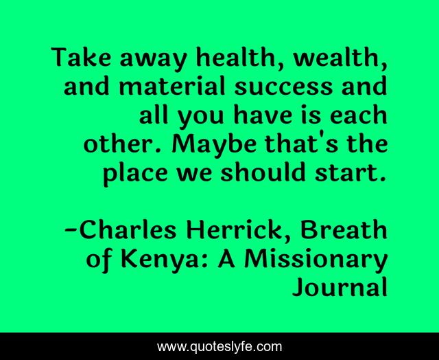 "Charles Herrick, Breath of Kenya: A Missionary Journal Quotes." Quoteslyfe.com, 2025. Tue. 09 Dec. 2025. <https://www.quoteslyfe.com/quote/Take-away-health-wealth-and-material-success-10416>.