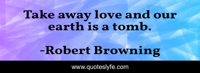 This page presents the quote "Take away love and our earth is a tomb.". Author of this quote is Robert Browning. This quote is about depth, love, poetry, affection,.