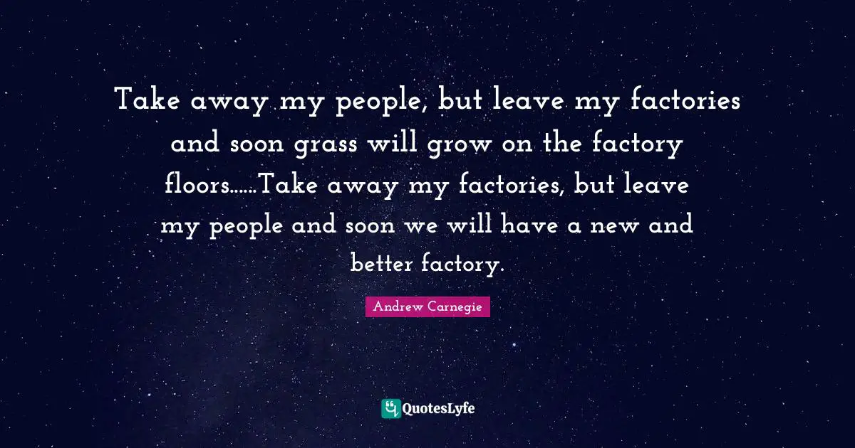 "Andrew Carnegie Quotes." Quoteslyfe.com, 2025. Tue. 30 Dec. 2025. <https://www.quoteslyfe.com/quote/Take-away-my-people-but-leave-my-367873>.