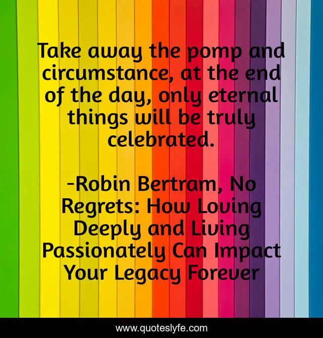 "Robin Bertram, No Regrets: How Loving Deeply and Living Passionately Can Impact Your Legacy Forever Quotes." Quoteslyfe.com, 2025. Mon. 08 Dec. 2025. <https://www.quoteslyfe.com/quote/Take-away-the-pomp-and-circumstance-at-209637>.