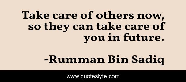 "Rumman Bin Sadiq Quotes." Quoteslyfe.com, 2025. Fri. 05 Dec. 2025. <https://www.quoteslyfe.com/quote/Take-care-of-others-now-so-they-102648>.