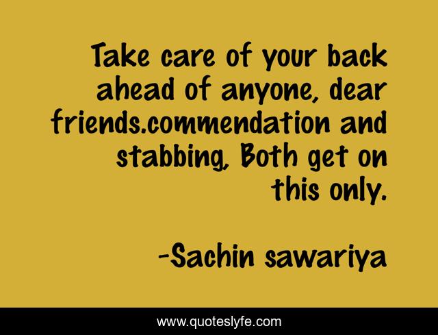 This page presents the quote "Take care of your back ahead of anyone, dear friends.commendation and stabbing, Both get on this only.". Author of this quote is Sachin sawariya. .