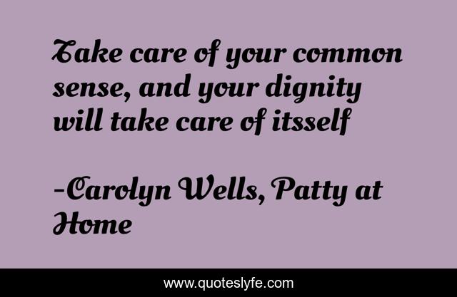 This page presents the quote "Take care of your common sense, and your dignity will take care of itsself". Author of this quote is Carolyn Wells, Patty at Home. This quote is about patty-series, dignity, common-sense,.