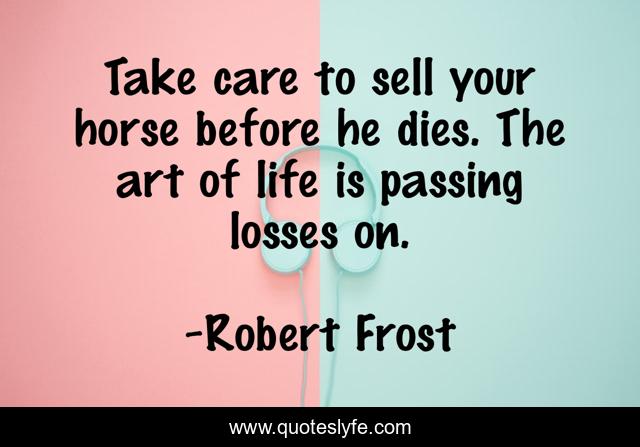 This page presents the quote "Take care to sell your horse before he dies. The art of life is passing losses on.". Author of this quote is Robert Frost. This quote is about life, horse, care,.