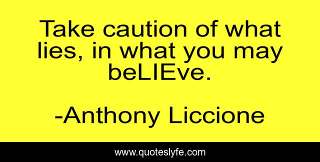 This page presents the quote "Take caution of what lies, in what you may beLIEve.". Author of this quote is Anthony Liccione. This quote is about lie, believe, truth,.