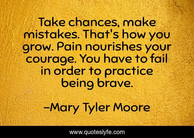 This page presents the quote "Take chances, make mistakes. That's how you grow. Pain nourishes your courage. You have to fail in order to practice being brave.". Author of this quote is Mary Tyler Moore. This quote is about enthusiasm, courage, inspirational,.