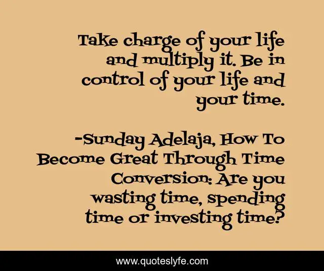 "Sunday Adelaja, How To Become Great Through Time Conversion: Are you wasting time, spending time or investing time? Quotes." Quoteslyfe.com, 2025. Sat. 06 Dec. 2025. <https://www.quoteslyfe.com/quote/Take-charge-of-your-life-and-multiply-39225>.