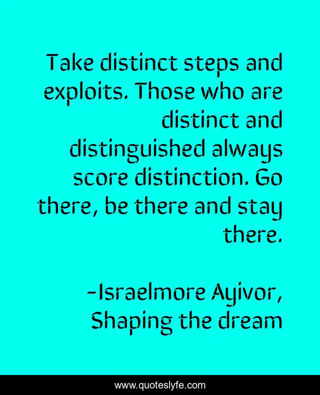 "Israelmore Ayivor, Shaping the dream Quotes." Quoteslyfe.com, 2025. Sat. 06 Dec. 2025. <https://www.quoteslyfe.com/quote/Take-distinct-steps-and-exploits-Those-who-93108>.