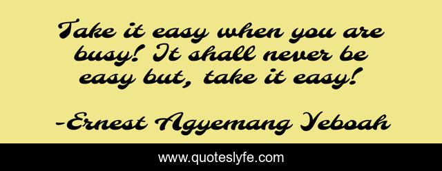 "Ernest Agyemang Yeboah Quotes." Quoteslyfe.com, 2025. Fri. 05 Dec. 2025. <https://www.quoteslyfe.com/quote/Take-it-easy-when-you-are-busy-159453>.