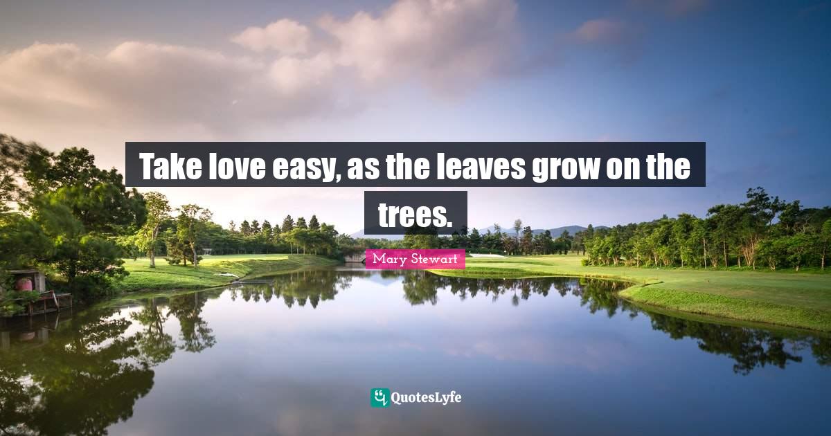 "Mary Stewart Quotes." Quoteslyfe.com, 2026. Fri. 20 Mar. 2026. <https://www.quoteslyfe.com/quote/Take-love-easy-as-the-leaves-grow-867977>.