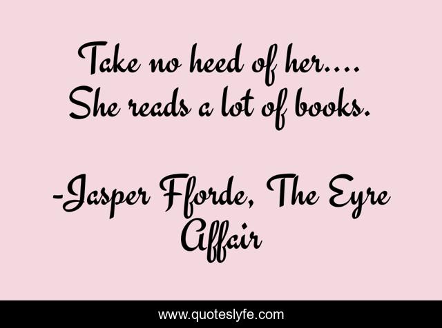 "Jasper Fforde, The Eyre Affair Quotes." Quoteslyfe.com, 2025. Sun. 07 Dec. 2025. <https://www.quoteslyfe.com/quote/Take-no-heed-of-her-She-reads-42695>.