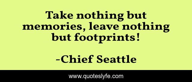 This page presents the quote "Take nothing but memories, leave nothing but footprints!". Author of this quote is Chief Seattle. This quote is about chief-seattle, conservation, nature, quote,.