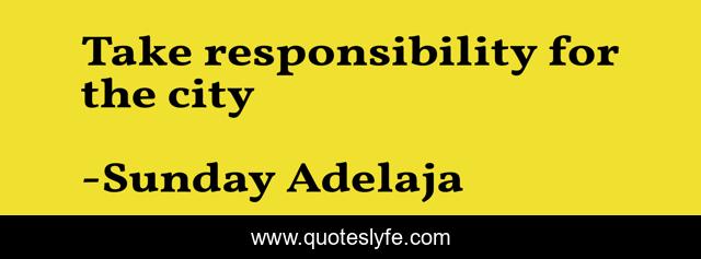 This page presents the quote "Take responsibility for the city". Author of this quote is Sunday Adelaja. This quote is about life, blessing, finance, money, work, job, leadership, responsibility, purpose,.