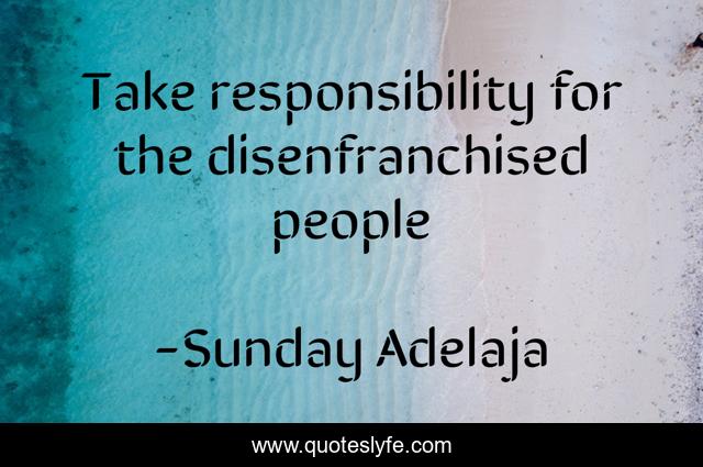 "Sunday Adelaja Quotes." Quoteslyfe.com, 2025. Fri. 05 Dec. 2025. <https://www.quoteslyfe.com/quote/Take-responsibility-for-the-disenfranchised-people-46181>.