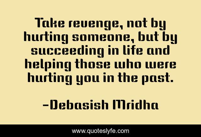 This page presents the quote "Take revenge, not by hurting someone, but by succeeding in life and helping those who were hurting you in the past.". Author of this quote is Debasish Mridha. This quote is about life, debasish, help, mridha, philosophy, revenge, hurt, past, succeed,.