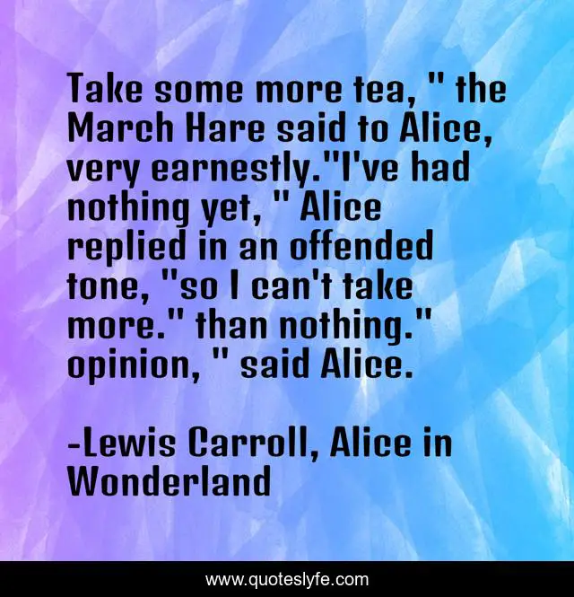 "Lewis Carroll, Alice in Wonderland Quotes." Quoteslyfe.com, 2025. Fri. 05 Dec. 2025. <https://www.quoteslyfe.com/quote/Take-some-more-tea-the-March-Hare-5708>.
