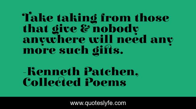 "Kenneth Patchen, Collected Poems Quotes." Quoteslyfe.com, 2025. Sat. 06 Dec. 2025. <https://www.quoteslyfe.com/quote/Take-taking-from-those-that-give-nobody-226904>.