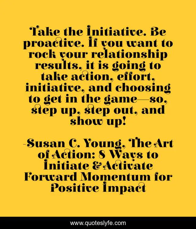 "Susan C. Young, The Art of Action: 8 Ways to Initiate & Activate Forward Momentum for Positive Impact Quotes." Quoteslyfe.com, 2025. Fri. 05 Dec. 2025. <https://www.quoteslyfe.com/quote/Take-the-Initiative-Be-proactive-If-you-233460>.