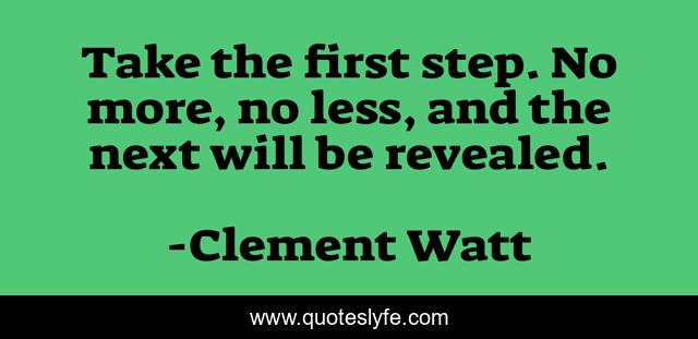 This page presents the quote "Take the first step. No more, no less, and the next will be revealed.". Author of this quote is Clement Watt. This quote is about enthusiasm, inspirational,.