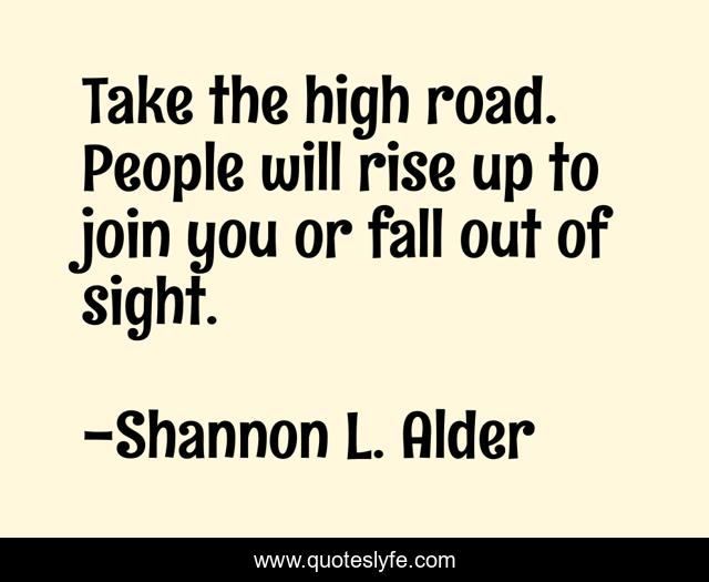 "Shannon L. Alder Quotes." Quoteslyfe.com, 2025. Tue. 09 Dec. 2025. <https://www.quoteslyfe.com/quote/Take-the-high-road-People-will-rise-65144>.