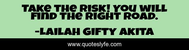 This page presents the quote "Take the risk! You will find the right road.". Author of this quote is Lailah Gifty Akita. This quote is about chances, right-road, risk, inspiration,.