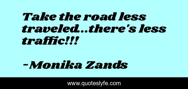 "Monika Zands Quotes." Quoteslyfe.com, 2025. Fri. 05 Dec. 2025. <https://www.quoteslyfe.com/quote/Take-the-road-less-traveled-there-s-140829>.