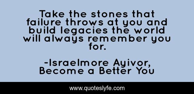 "Israelmore Ayivor, Become a Better You Quotes." Quoteslyfe.com, 2025. Sat. 06 Dec. 2025. <https://www.quoteslyfe.com/quote/Take-the-stones-that-failure-throws-at-36727>.
