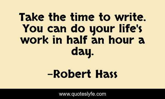 "Robert Hass Quotes." Quoteslyfe.com, 2025. Sun. 14 Dec. 2025. <https://www.quoteslyfe.com/quote/Take-the-time-to-write-You-can-25108>.
