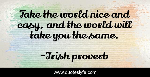 "Irish proverb Quotes." Quoteslyfe.com, 2025. Fri. 05 Dec. 2025. <https://www.quoteslyfe.com/quote/Take-the-world-nice-and-easy-and-89485>.