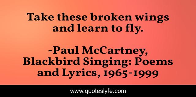 "Paul McCartney, Blackbird Singing: Poems and Lyrics, 1965-1999 Quotes." Quoteslyfe.com, 2025. Fri. 05 Dec. 2025. <https://www.quoteslyfe.com/quote/Take-these-broken-wings-and-learn-to-225354>.