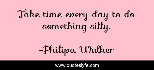 This page presents the quote "Take time every day to do something silly.". Author of this quote is Philipa Walker. This quote is about day, one,.