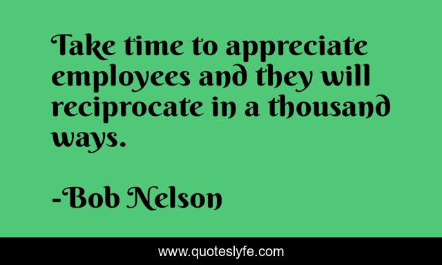 This page presents the quote "Take time to appreciate employees and they will reciprocate in a thousand ways.". Author of this quote is Bob Nelson. This quote is about employees, appreciate,.