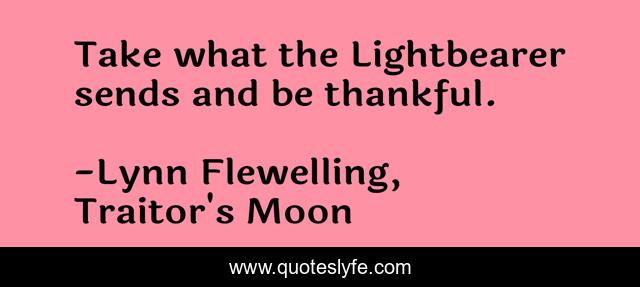 This page presents the quote "Take what the Lightbearer sends and be thankful.". Author of this quote is Lynn Flewelling, Traitor's Moon. .