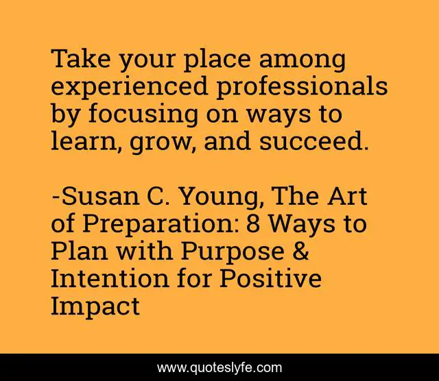 "Susan C. Young, The Art of Preparation: 8 Ways to Plan with Purpose & Intention for Positive Impact Quotes." Quoteslyfe.com, 2025. Tue. 09 Dec. 2025. <https://www.quoteslyfe.com/quote/Take-your-place-among-experienced-professionals-by-227430>.