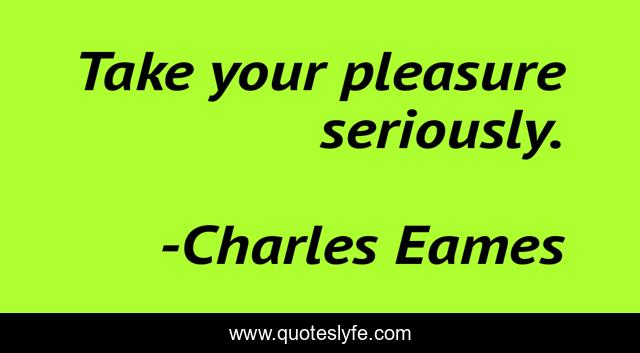 "Charles Eames Quotes." Quoteslyfe.com, 2025. Sat. 06 Dec. 2025. <https://www.quoteslyfe.com/quote/Take-your-pleasure-seriously-227202>.