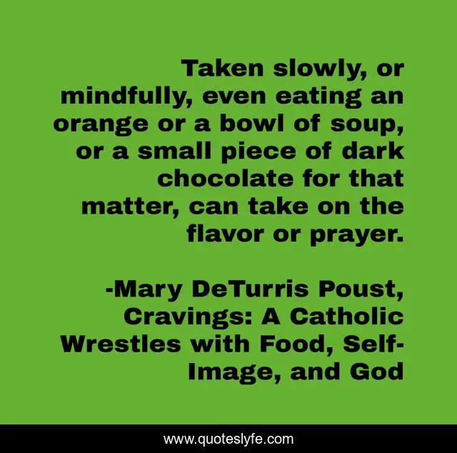 "Mary DeTurris Poust, Cravings: A Catholic Wrestles with Food, Self-Image, and God Quotes." Quoteslyfe.com, 2025. Sat. 06 Dec. 2025. <https://www.quoteslyfe.com/quote/Taken-slowly-or-mindfully-even-eating-an-115429>.