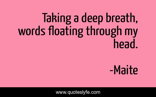 This page presents the quote "Taking a deep breath, words floating through my head.". Author of this quote is Maite. This quote is about thoughts, deep-breath, breathing, floating, words,.