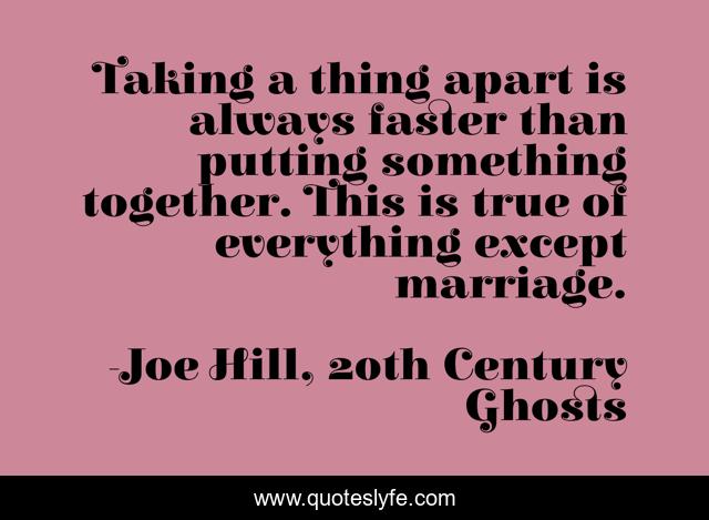 "Joe Hill, 20th Century Ghosts Quotes." Quoteslyfe.com, 2025. Fri. 05 Dec. 2025. <https://www.quoteslyfe.com/quote/Taking-a-thing-apart-is-always-faster-231670>.