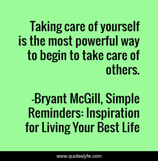 "Bryant McGill, Simple Reminders: Inspiration for Living Your Best Life Quotes." Quoteslyfe.com, 2025. Fri. 05 Dec. 2025. <https://www.quoteslyfe.com/quote/Taking-care-of-yourself-is-the-most-88955>.
