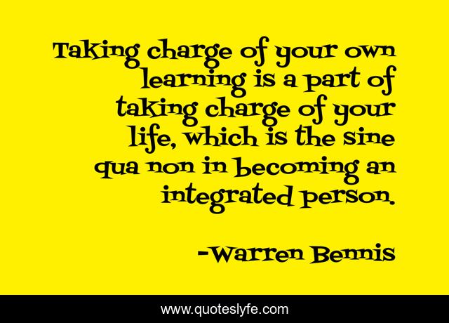 This page presents the quote "Taking charge of your own learning is a part of taking charge of your life, which is the sine qua non in becoming an integrated person.". Author of this quote is Warren Bennis. This quote is about person, life, part,.