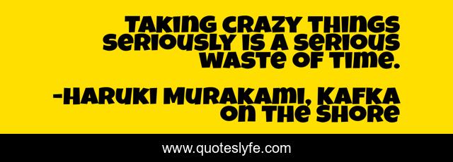 This page presents the quote "Taking crazy things seriously is a serious waste of time.". Author of this quote is Haruki Murakami, Kafka on the Shore. .