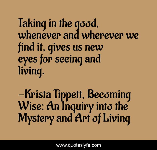 "Krista Tippett, Becoming Wise: An Inquiry into the Mystery and Art of Living Quotes." Quoteslyfe.com, 2025. Fri. 05 Dec. 2025. <https://www.quoteslyfe.com/quote/Taking-in-the-good-whenever-and-wherever-177569>.