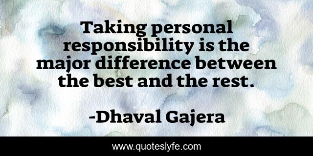 This page presents the quote "Taking personal responsibility is the major difference between the best and the rest.". Author of this quote is Dhaval Gajera. This quote is about responsibility, best,.