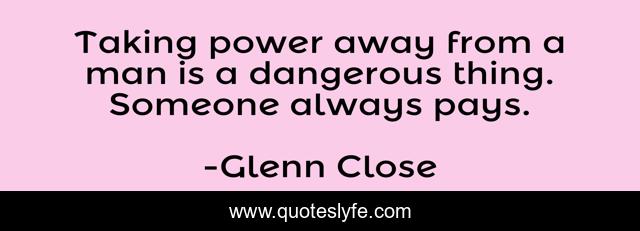 This page presents the quote "Taking power away from a man is a dangerous thing. Someone always pays.". Author of this quote is Glenn Close. .