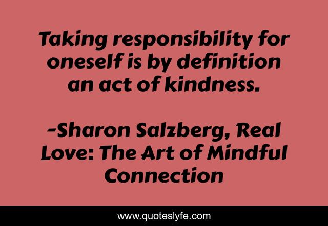 This page presents the quote "Taking responsibility for oneself is by definition an act of kindness.". Author of this quote is Sharon Salzberg, Real Love: The Art of Mindful Connection. This quote is about personal-responsibility, love, personal-growth, responsibility, kindness, real-love, affection,.