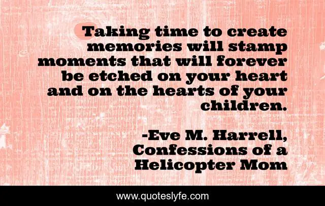 "Eve M. Harrell, Confessions of a Helicopter Mom Quotes." Quoteslyfe.com, 2025. Fri. 05 Dec. 2025. <https://www.quoteslyfe.com/quote/Taking-time-to-create-memories-will-stamp-164417>.