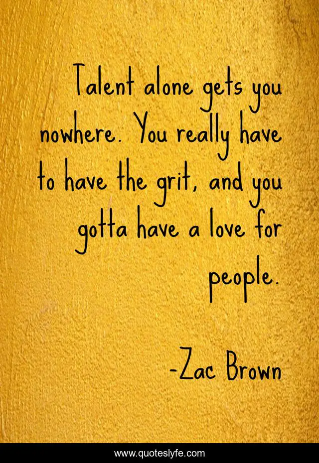 This page presents the quote "Talent alone gets you nowhere. You really have to have the grit, and you gotta have a love for people.". Author of this quote is Zac Brown. This quote is about alone, talent, people,.