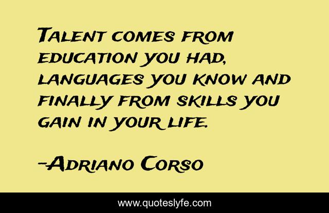 "Adriano Corso Quotes." Quoteslyfe.com, 2025. Fri. 05 Dec. 2025. <https://www.quoteslyfe.com/quote/Talent-comes-from-education-you-had-languages-230272>.